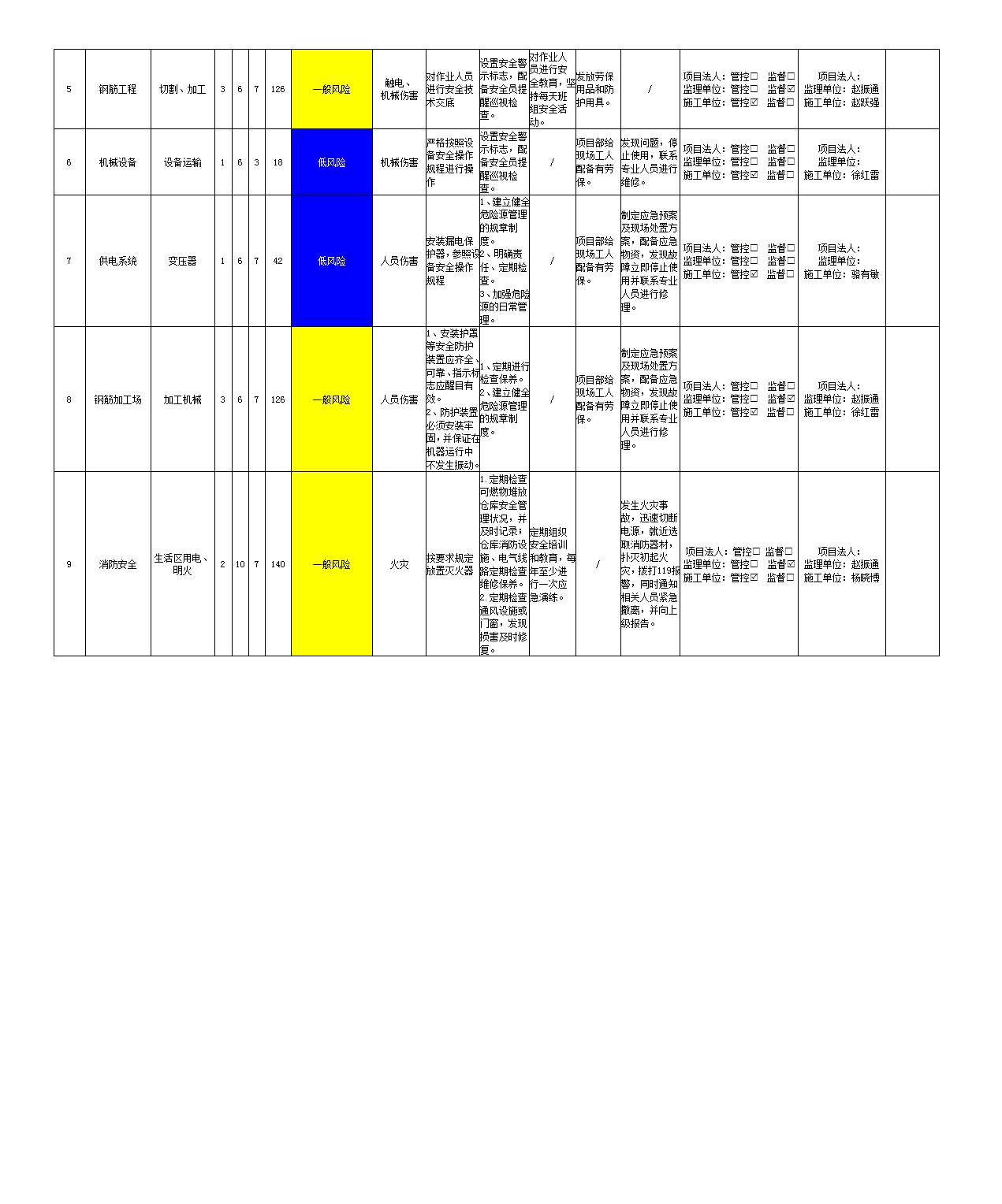 2024年二季度在建項目安全風險分級管控清單(小浪底南岸灌區工程施工7標)