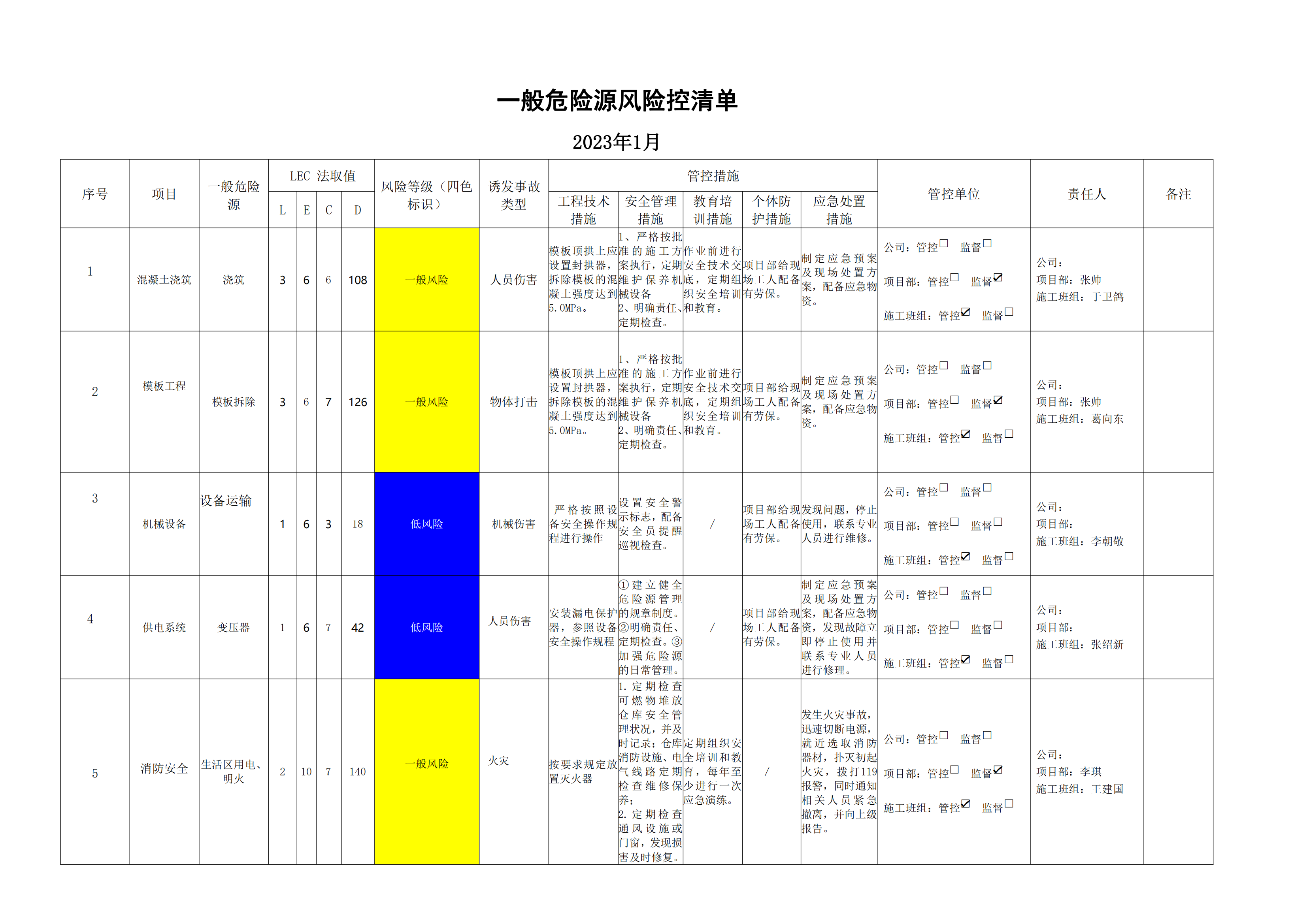 洛寧縣洛河生態治理三期危險源風險分級管控清單(1月)
