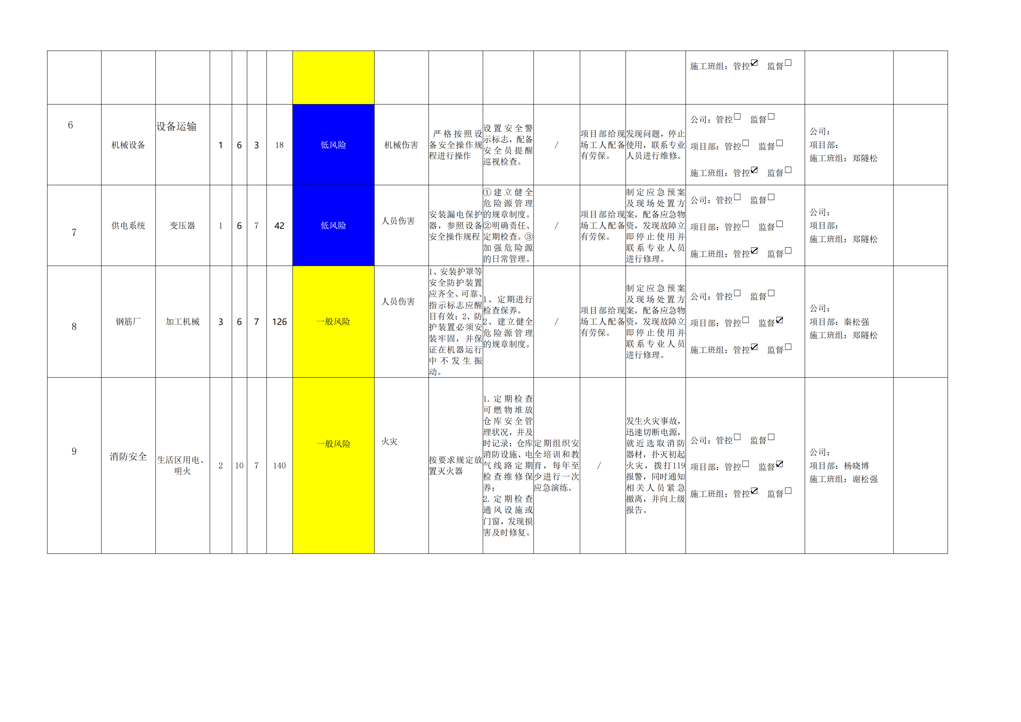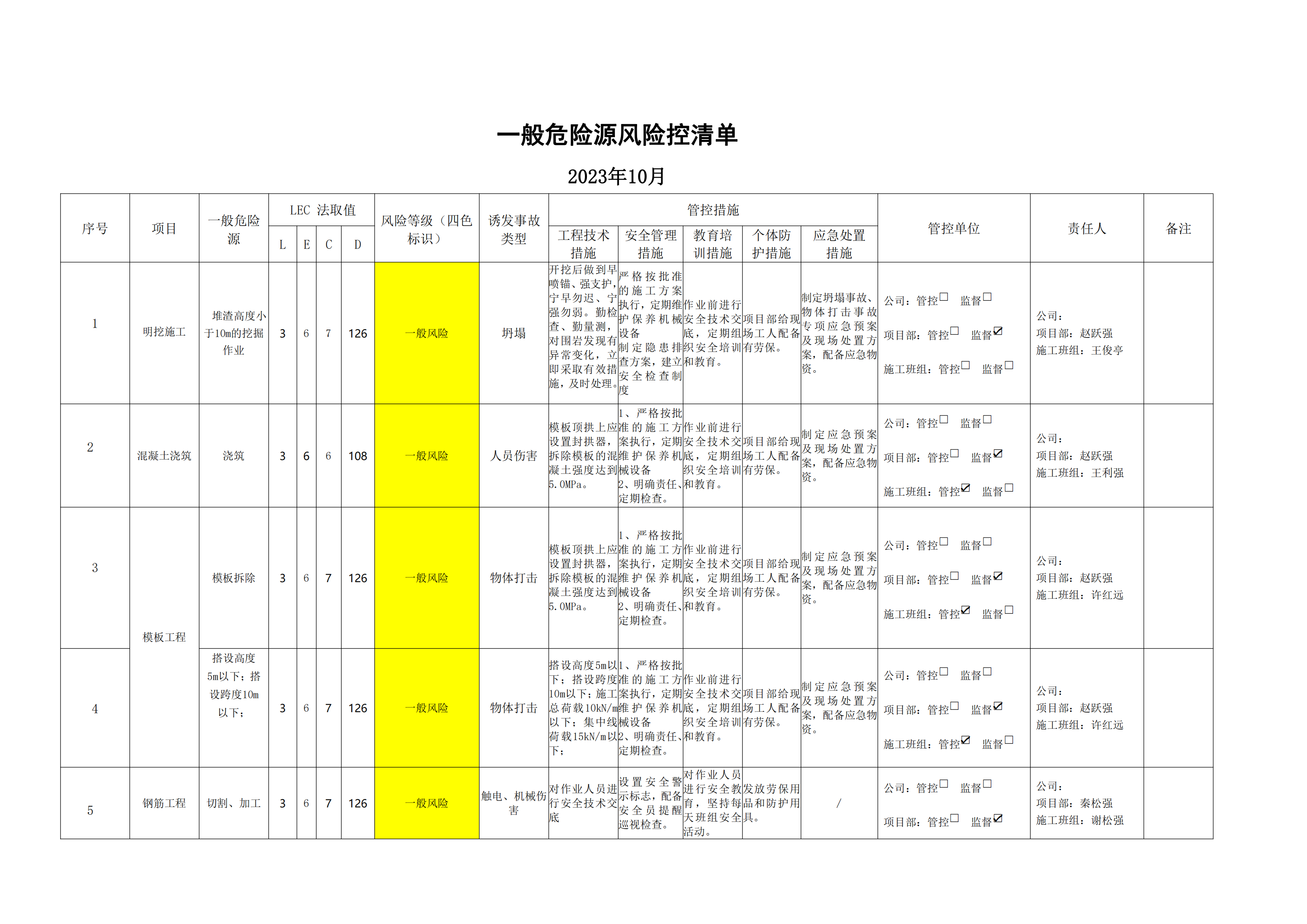 小浪底南岸灌區7標項目危險源風險分級管控清單(10月)